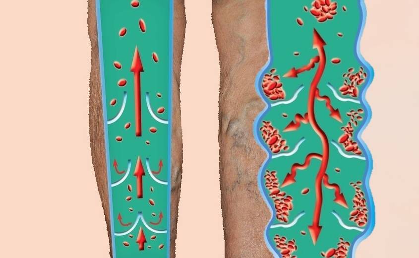 Manchmal aber kommt dieses System an seine Grenzen, und dann beginnt ein echter Teufelskreis. Denn sobald sich eine Vene zu weit aufdehnt, können die Venenklappen nicht mehr richtig schließen. Jetzt versackt noch mehr Blut in der Vene und überfüllt sie. Anfangs ist das noch reversibel, doch mit den Jahren gehen die zarten Venenklappen kaputt. Die Vene beult sich unter der Dauerbelastung aus und wird zur Krampfader, die sich krumm oder knäuelförmig über das Bein schlängelt.