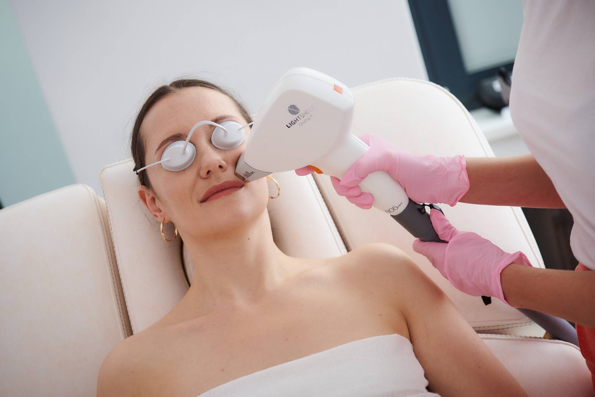 Die Laser-Haarentfernung ist eine wirksame und schonende Alternative. Dabei entfernt ein leistungsstarkes Laser-Haarentfernungsgerät (z.B. dem LightSheer® Diodenlaser) oder intensiv gepulstem Licht (IPL) unerwünschte Haare, indem es die Haarfollikel in der Haut erhitzt und zerstört. Es handelt sich um eine sichere Methode zur Haarreduktion, die an verschiedenen Körperstellen wie Gesicht, Oberkörper, Beinen, Armen und Achseln angewendet werden kann. Da die Laser-Haarentfernung ein schnelles und schmerzfreies Verfahren ist, eignet sich diese besonders im Intimbereich und der Bikinizone.